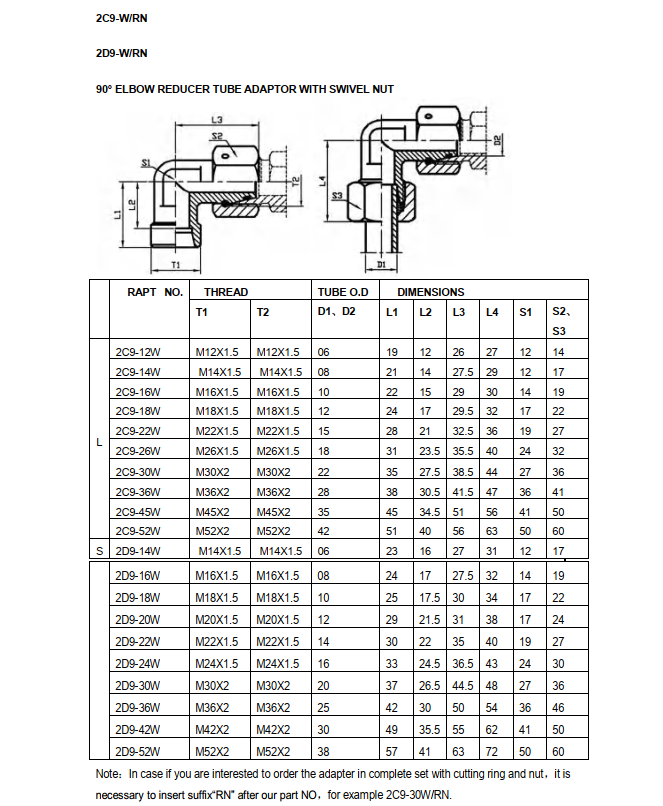 2D9 Metryczny zewnętrzno-wewnętrzny adapter kolankowy, seria S