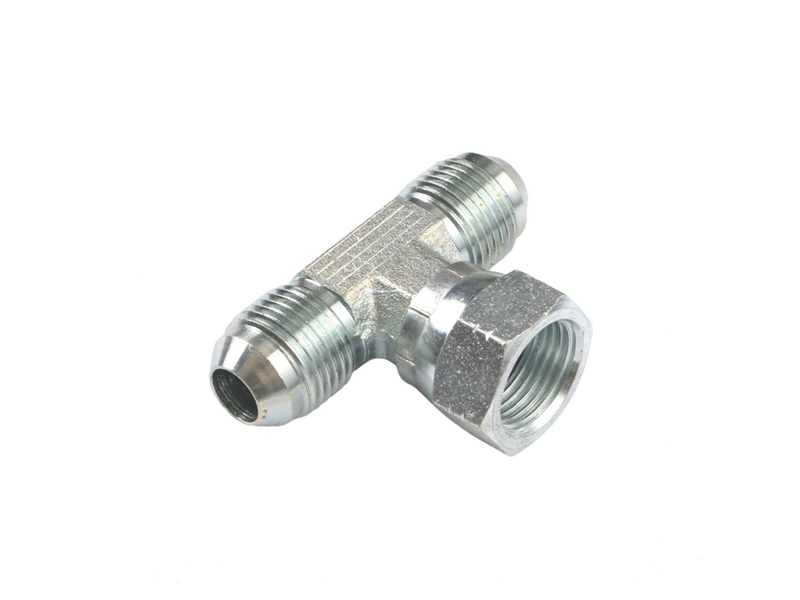 JIC Swivel Branch Tee connector is a JIC branch connector which is designed as T shape. Two ends of this branch connector locating along each other are JIC male threads. They mate with a JIC female connector. The third end locating in the middle is the swivel joint of the branch connector and has female threads.