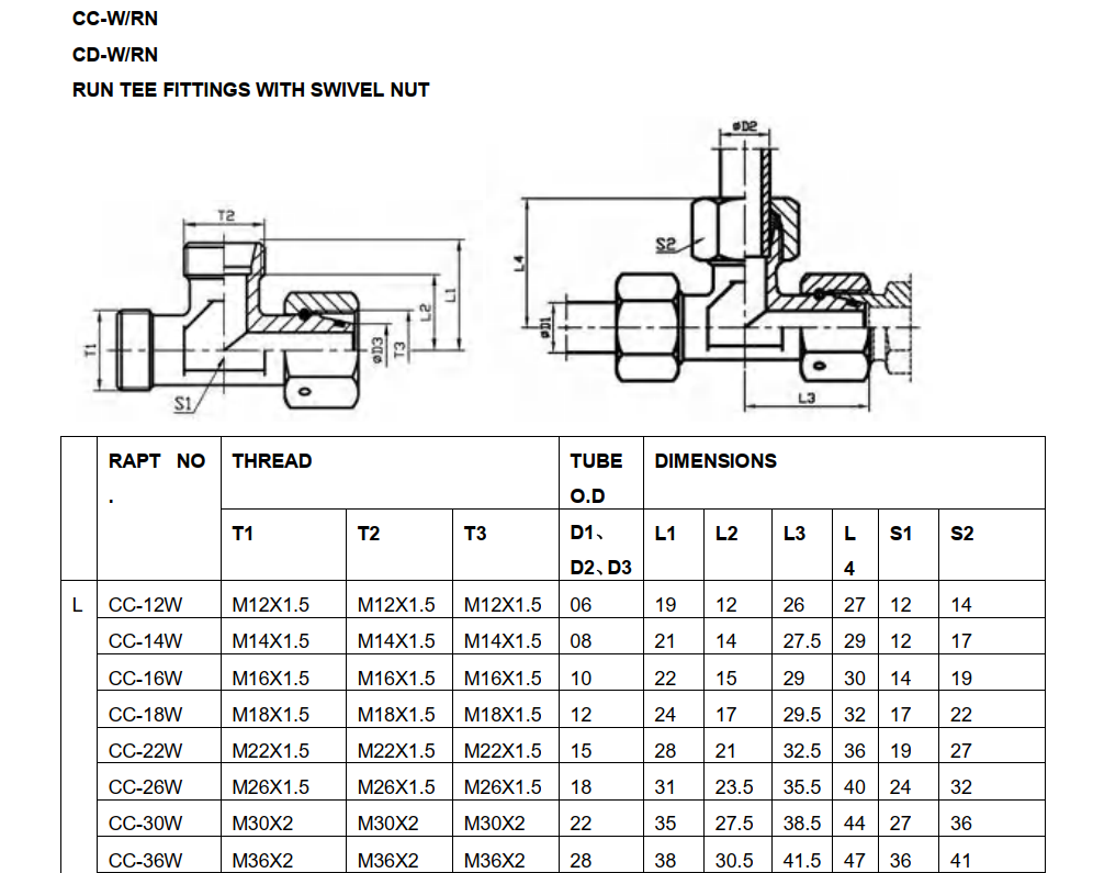DIN Swivel Nut Run Tee Adapter comes in various sizes. Pay close attention to the correct size while selecting and installing the connectors. Before choosing the adapter, take the fluid volume, pressure, and other system properties into consideration. Different sizes for this adapter are available in the above information table. You can also check our other DIN 2353 Bite Type Adapters including a wide range with different shapes and sizes for making any desired connections.